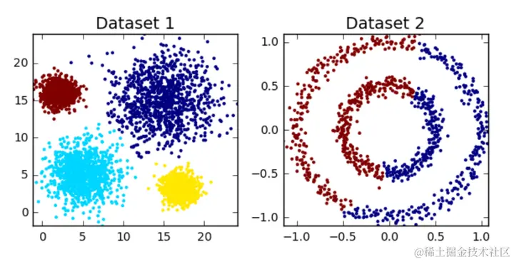 - k-means:适用于数据均匀分布的情况。