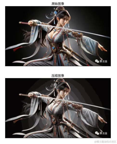 # 显示原始图像和压缩后的图像