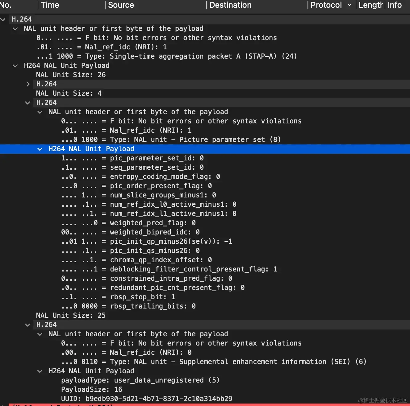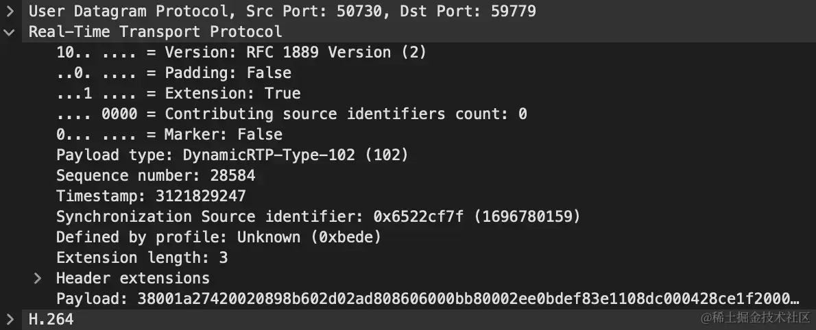 4.查看rtp包的payload type,比如说type是 102,那么在wireshark工具栏选择Edit->preferences->protocols->H264, 把H264 dynamic payload types设成 102