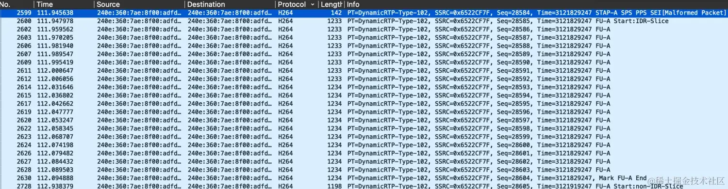 2.用wireshark抓取H264视频码流,最好过滤掉其他码流