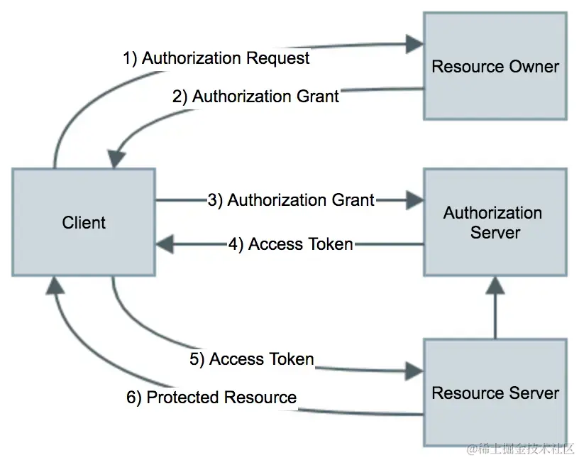 这个过程就是一个典型的 OAuth2 过程, OAuth 协议定义的四种角色如下