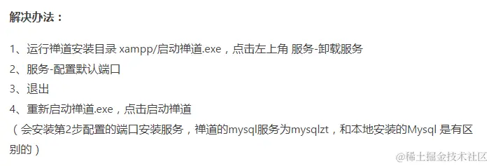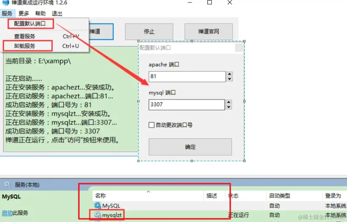 主要是 mysql 数据库默认端口是3306,如果用的是禅道一键安装包,启动服务的时候要切换端口,不能和之前的mysql端口冲突。