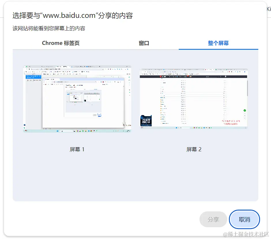 - 屏幕捕获是一个敏感操作,因为它可能涉及到捕获用户的敏感信息。因此,浏览器会要求用户明确授权。