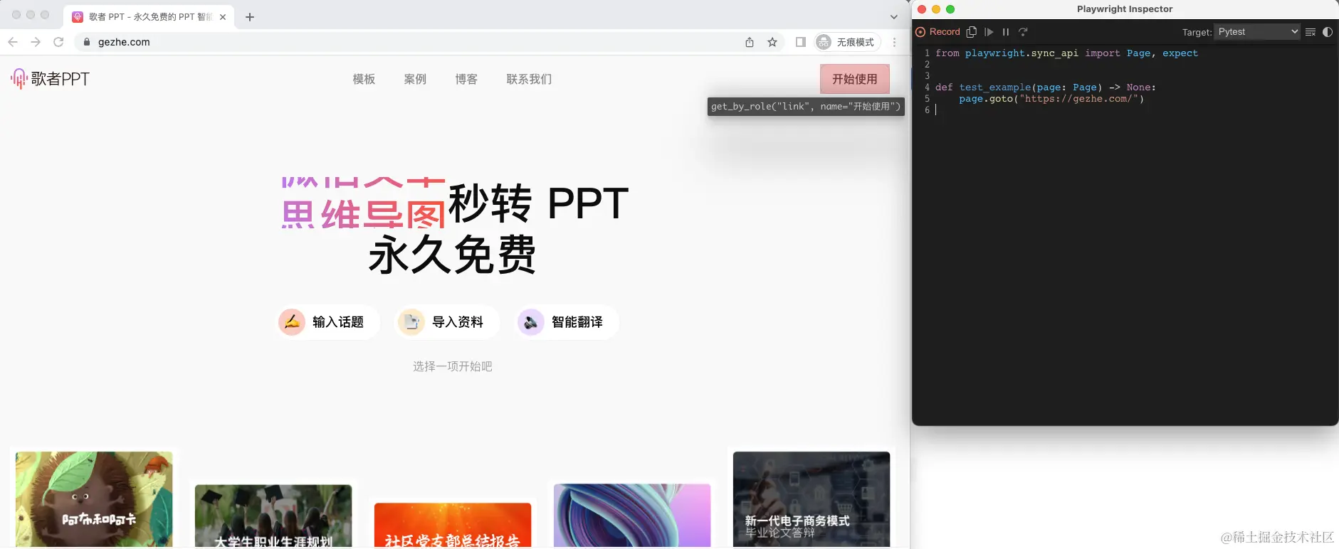 playwright codegen https://gezhe.com/
