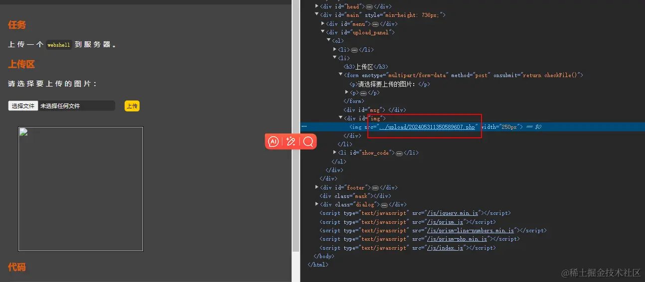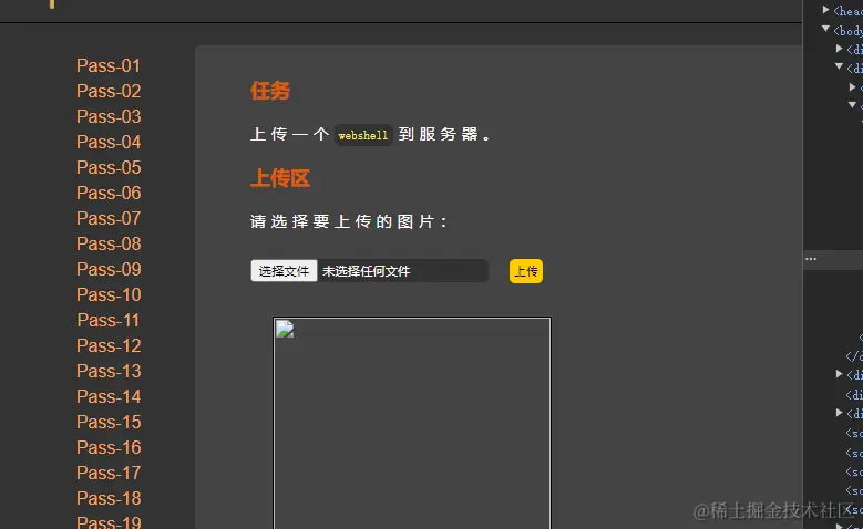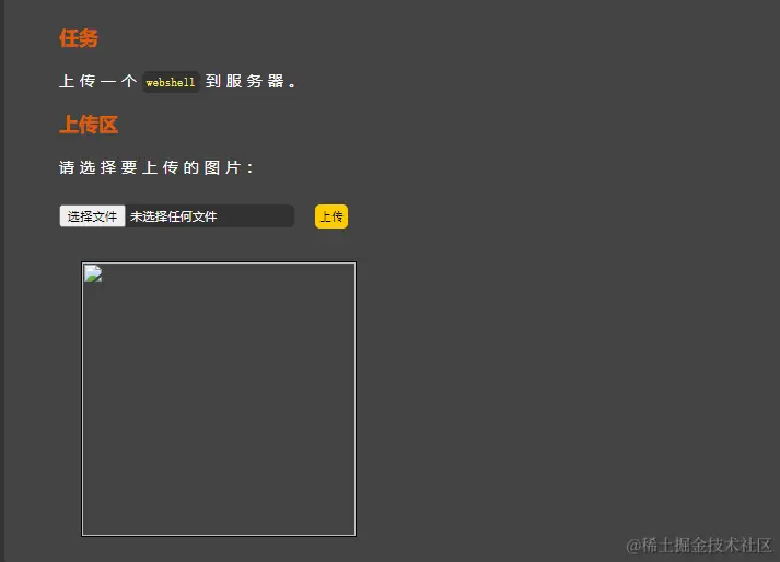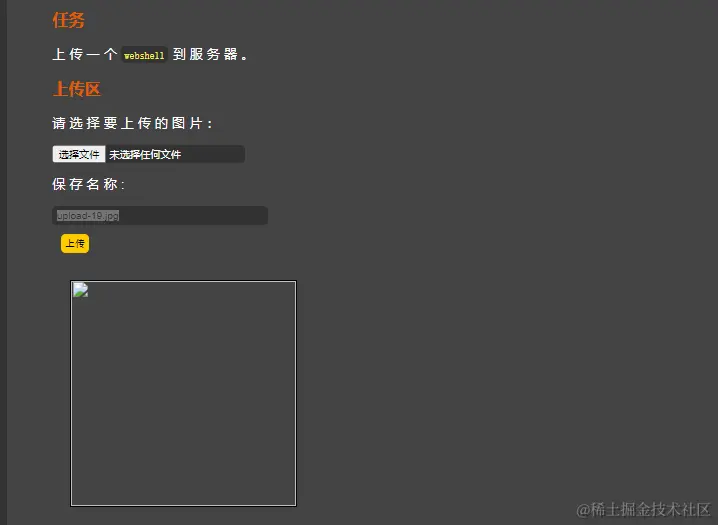 这个页面中没有文件包含漏洞,图片马的漏洞利用条件就是文件包含。此时没有这个漏洞了,那么可以使用如下方法。