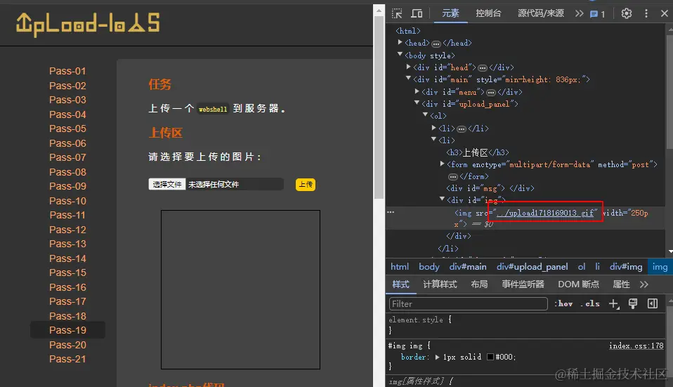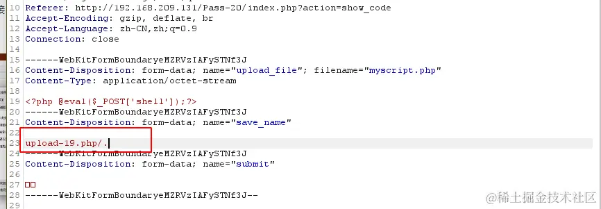 在php中move_uploaded_file有一个特性 修改上传文件名称为upload-19.php/.