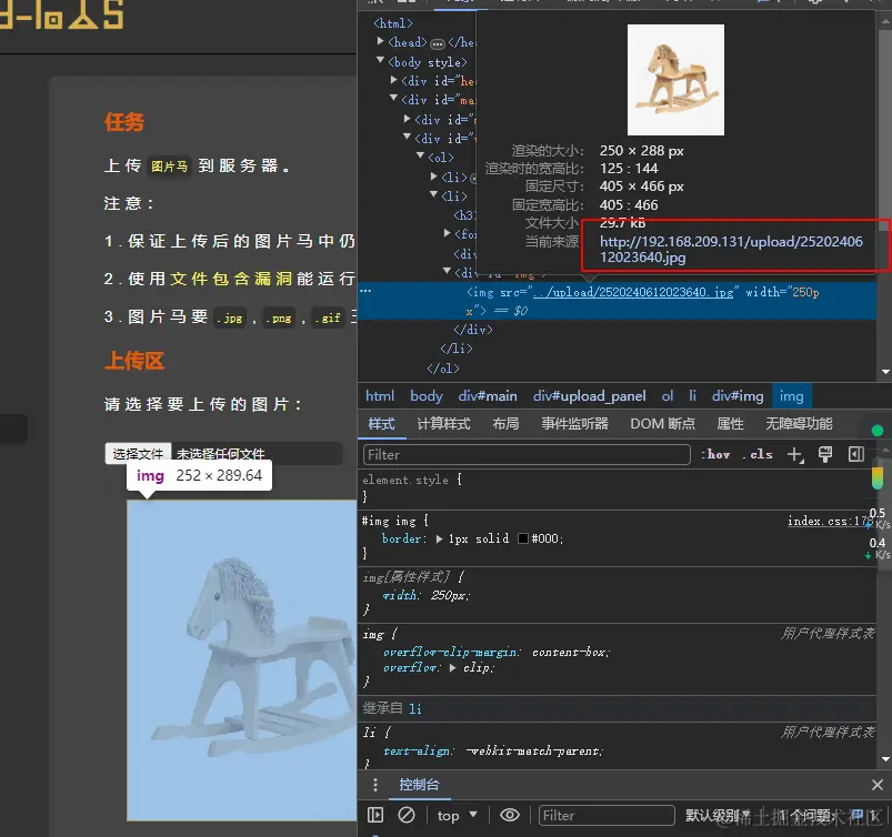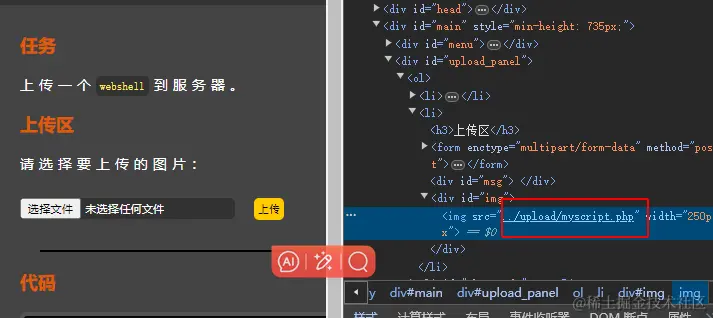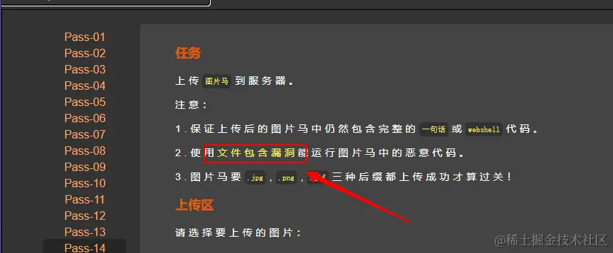 有俩种方法,使用制作好的图片马上传,然后利用labs自带的includ漏洞进行包含,但是关卡没有说使用文件包含。