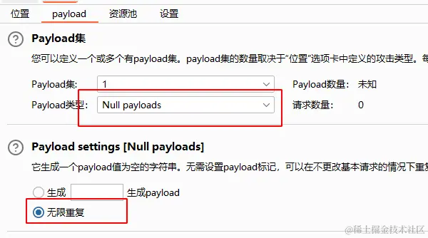 接着设置无限发送空的Payloads,来让它一直上传该文件