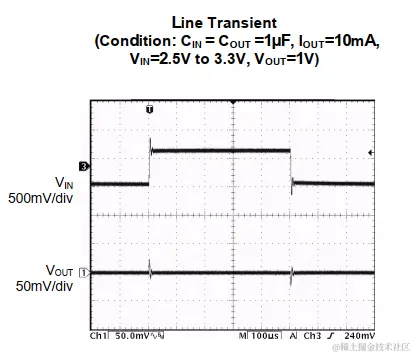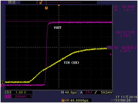 实际测试LDO的上电瞬间,VOUT起来是比较平缓的,并没有电压过冲。