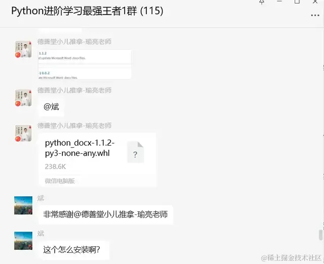 【瑜亮老师】后来甩了一个python-docx的wheel安装包在群里。