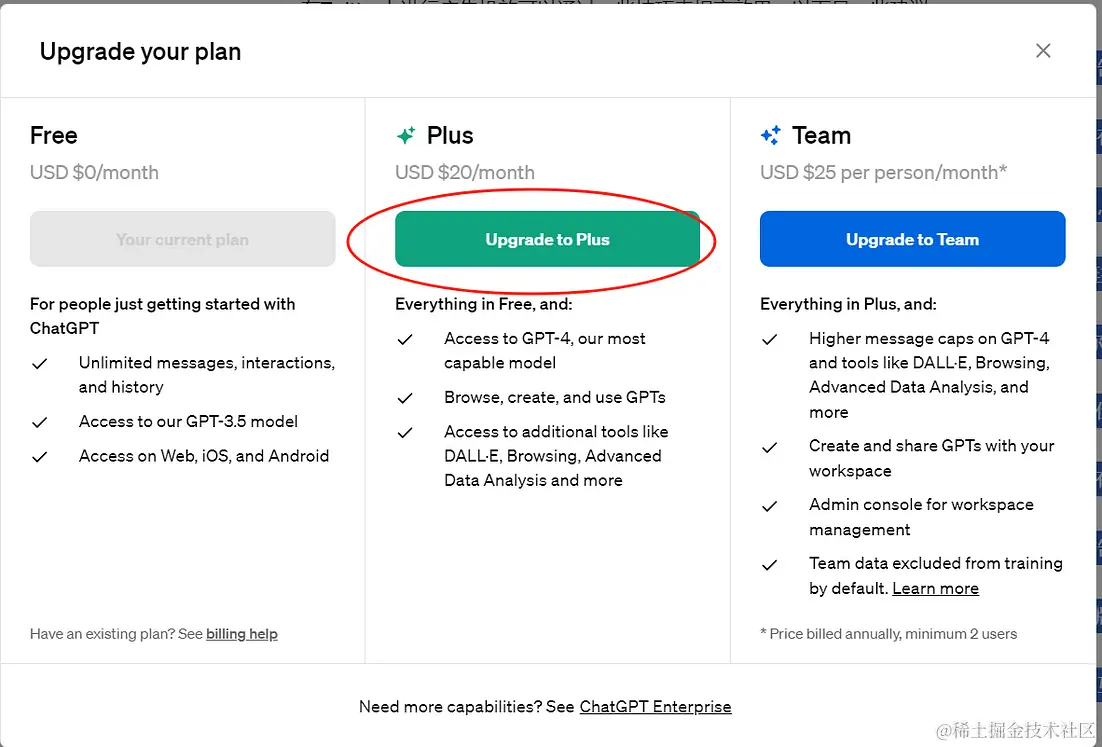 开完卡之后登录ChatGPT,点击“Upgrade to Plus”