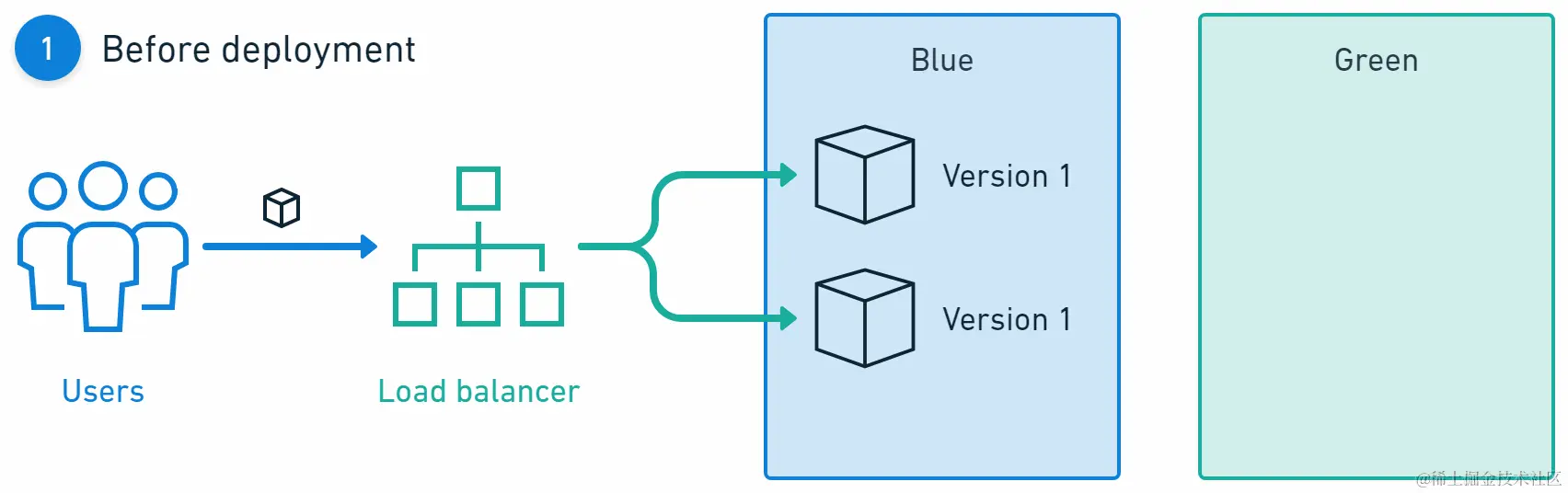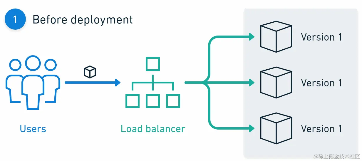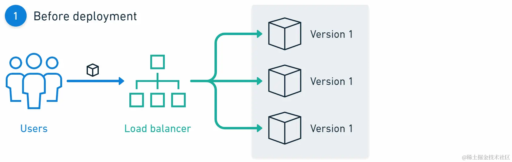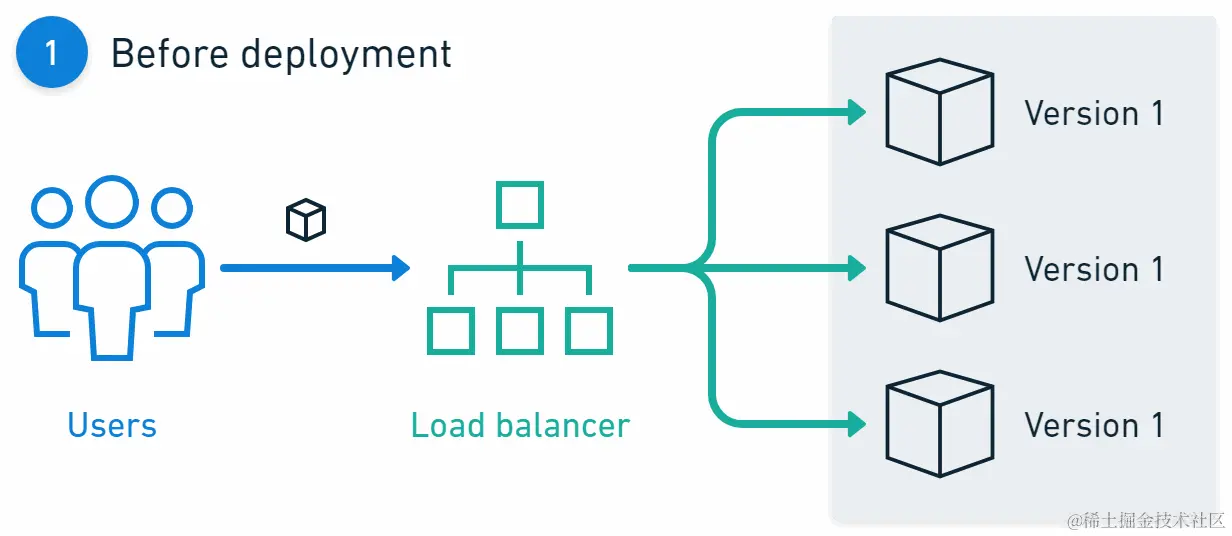 - 部署前:所有用户都被路由到应用程序的版本 1。