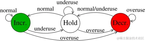 这个带宽是怎么估计出来的,在接收方主要就根据延迟 delay 通过一些算法来估算