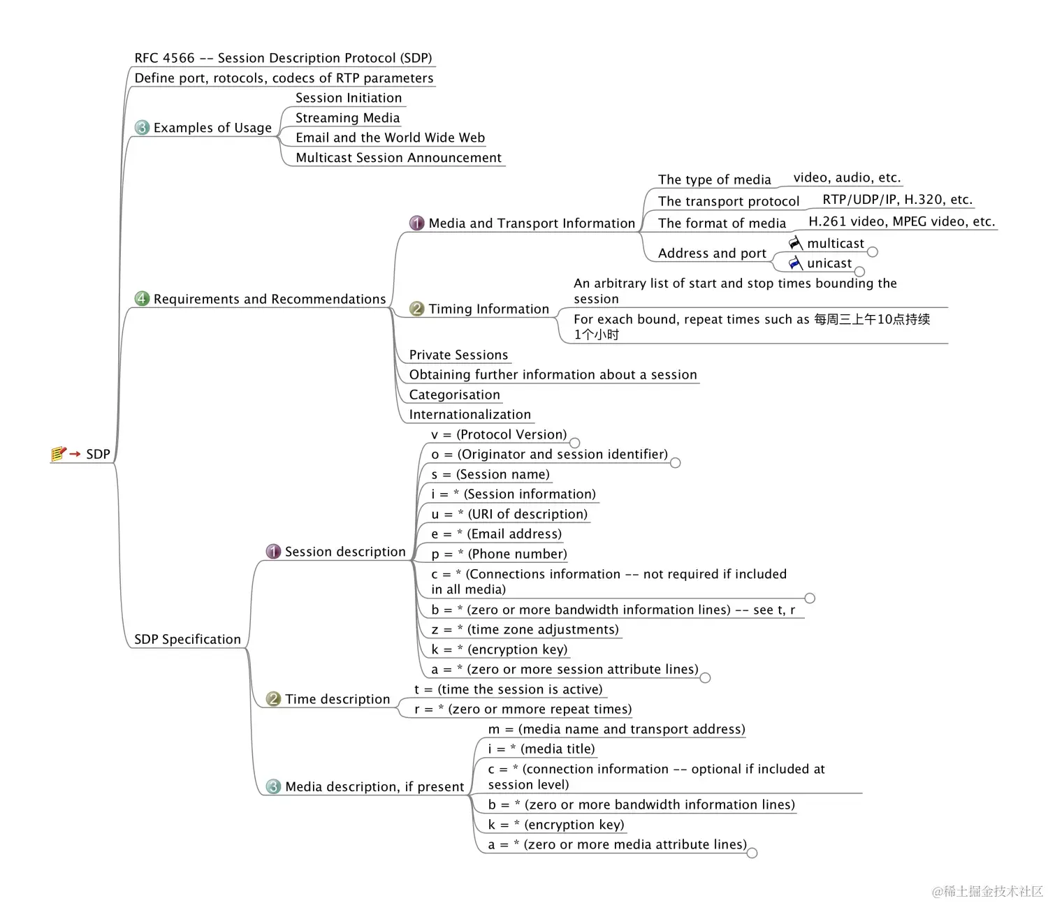 SIP的很大一块功能是协商媒体通道的搭建, 它有一个伴生协议 SDP(Session Description Protocol) 参见 RFC4566