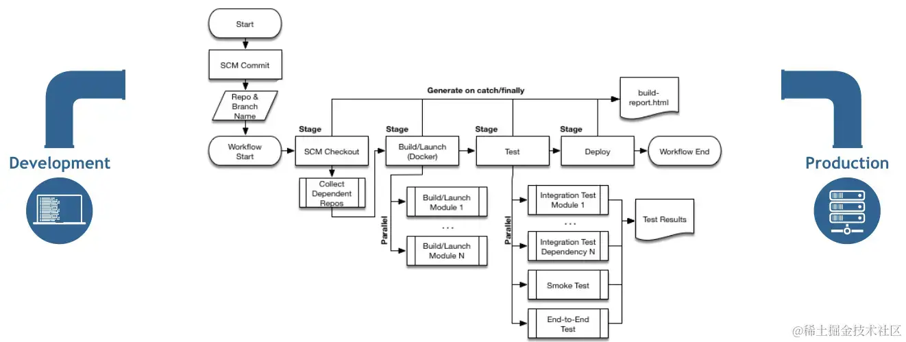 - 自动执行功能测试 在测试环境中, 自动运行所有需要依赖外部环境的 API 和 E2E(端到端)的测试, 如果有一条测试不通过, 也会终止构建流水线, 自动测试的结果会生成报告