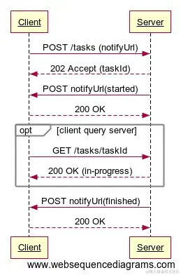 这里的 Client 和 Server 也可以是 Service1 和 Service2, 如果 Client 是Web App, 那么也可以由 Client 主动以 taskId 来查询, 抑或以 websocket , BOSH(Bidirectional-streams Over Synchronous HTTP) 之类的双工通信方式进行主动通知.