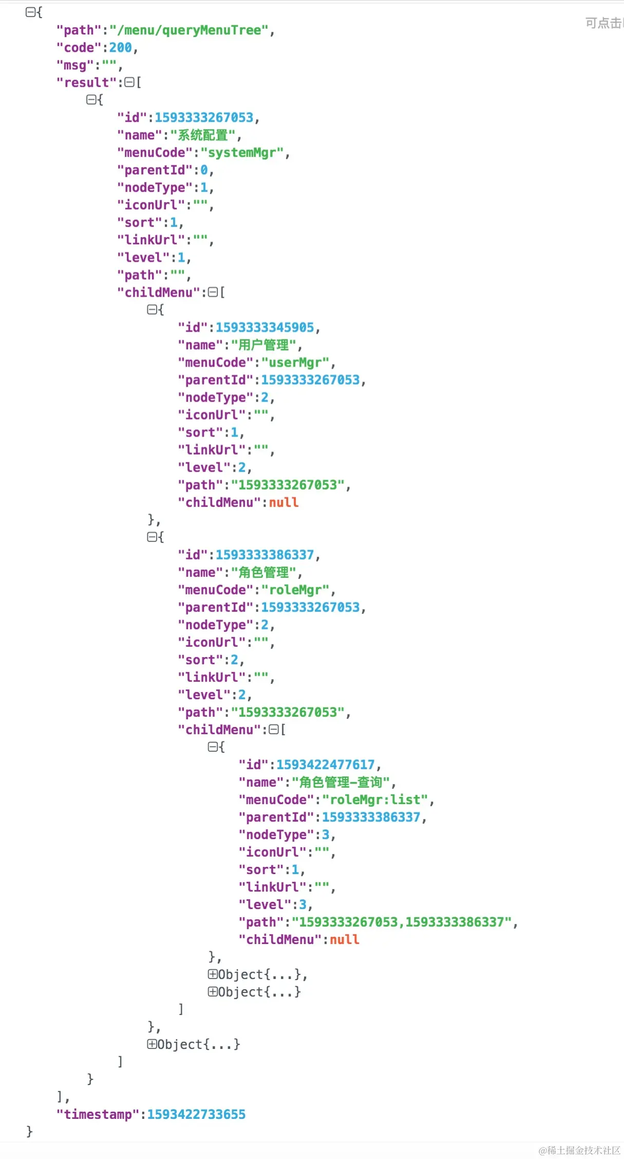 然后,编写一个通过用户ID查询菜单的接口,将数据结果返回给用户,代码示例如下!