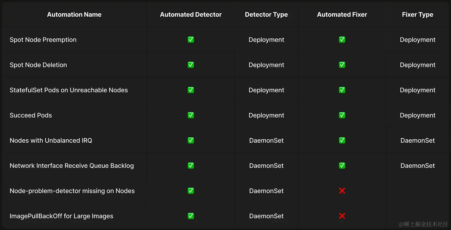 图 2:在我们 Kubernetes 平台上当前处于活动状态的自我修复自动化列表。