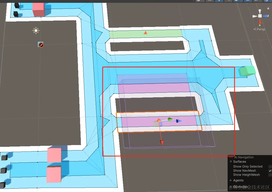NavMeshModifierVolume与NavMeshModifier差不多,区别是前者作用于对体积盒包围的所有物体(或物体的部分)