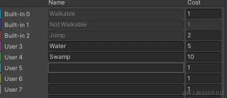 | AgentType | 适用类型的代理。(旧版烘焙的网格数据只能适用于一种代理类型,而新版则可以适用多种类型的代理) |