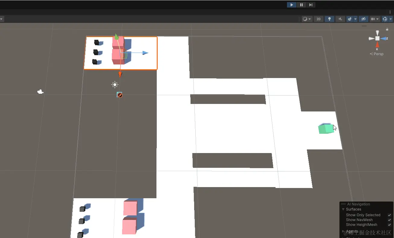 - Auto Braking 启用此属性后,代理在到达目标时将减速。对于巡逻等行为(这种情况下,代理应在多个点之间平滑移动)应禁用此属性