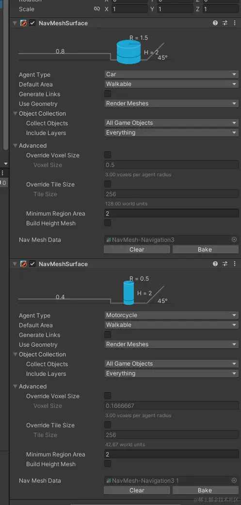允许对一些要用来被NavMeshSurface组件烘焙的物体进行微调