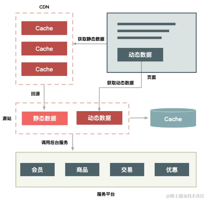 - 异步化地域因素:详情页面上与地域相关的因素做成异步方式获取,当然你也可以通过动态请求方式获取,只是这里通过异步获取更合适。