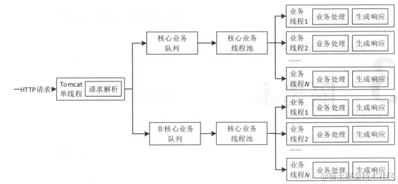 线程隔离主要是指线程池隔离,在实际使用时,我们会把请求分类,然后交给不同的线程池处理。当一种业务的请求处理发生问题时,不会将故障扩散到其他线程池,从而保证其他服务可用。