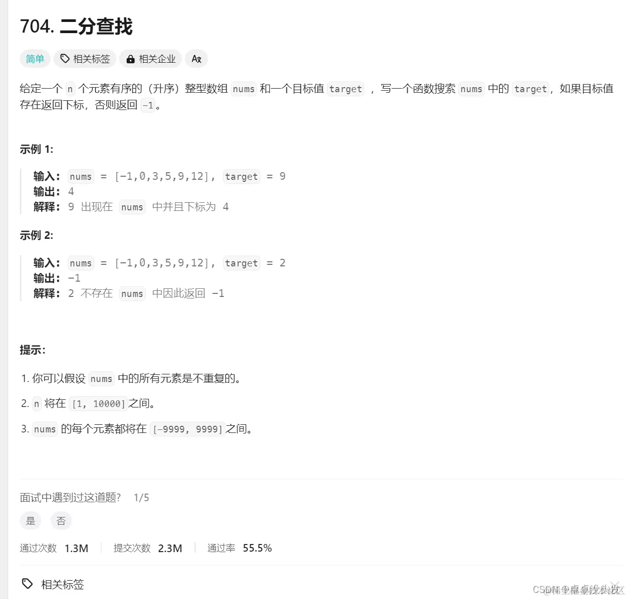 - 有序性:二分查找算法的基础是数据的有序性。只有当数据集(如数组)是有序的,算法才能有效工作。