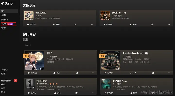 如果你实在是没有什么想法或者不知道该怎么写歌词或者风格,你可以去探索中找找你喜欢的音乐。