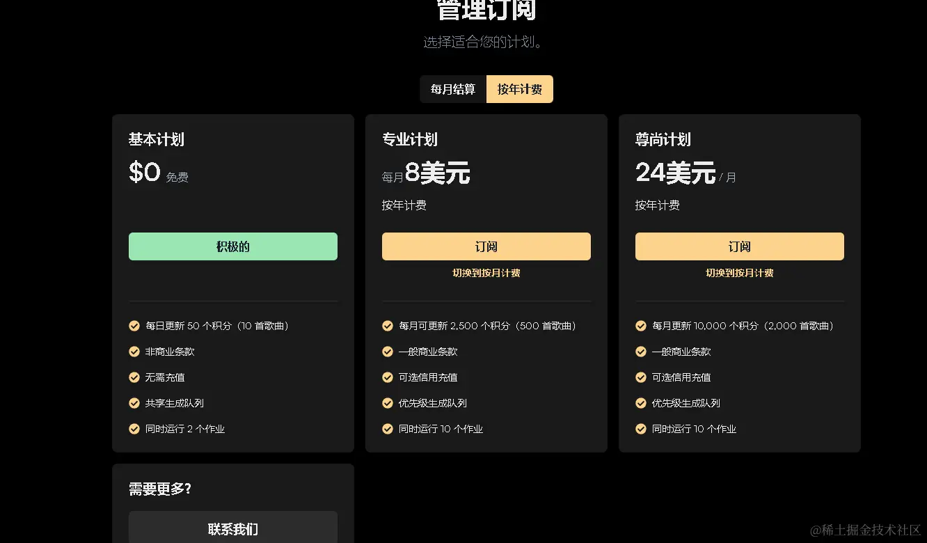 可以选择不订阅,每天都会更新50个积分,可以创作10首歌曲