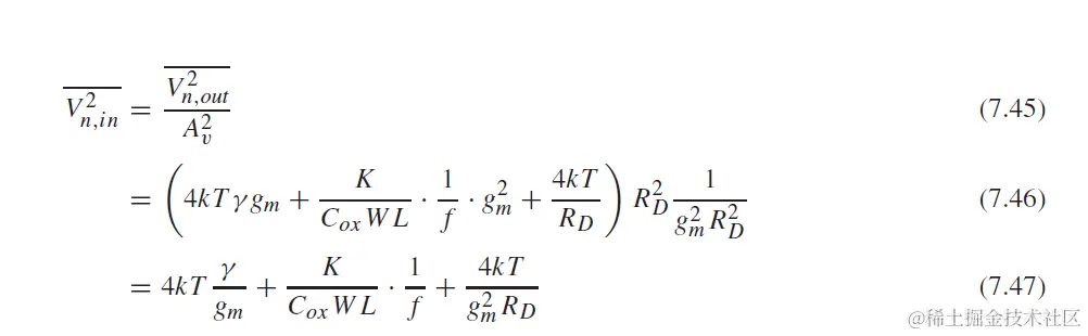 注意, 为了减小噪声需要增大gm1, 即增大drain电流或者增大(W/L)1. 同时减小gm2, 即减小 (W/L)2