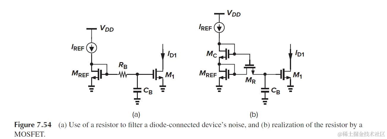 为了减小输出噪声, 可以在gate添加Cb电容, 或者把gm做小(W/L取小)