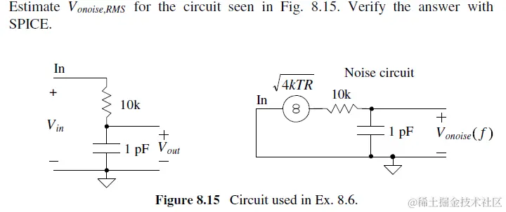 对于一个RC filter, 其输出/输入噪声 output RMS noise voltage :