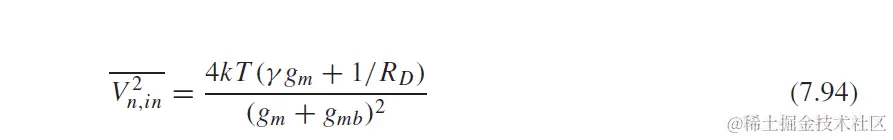 MOSFETs同样有热噪声, 来源于沟道, 其模型为