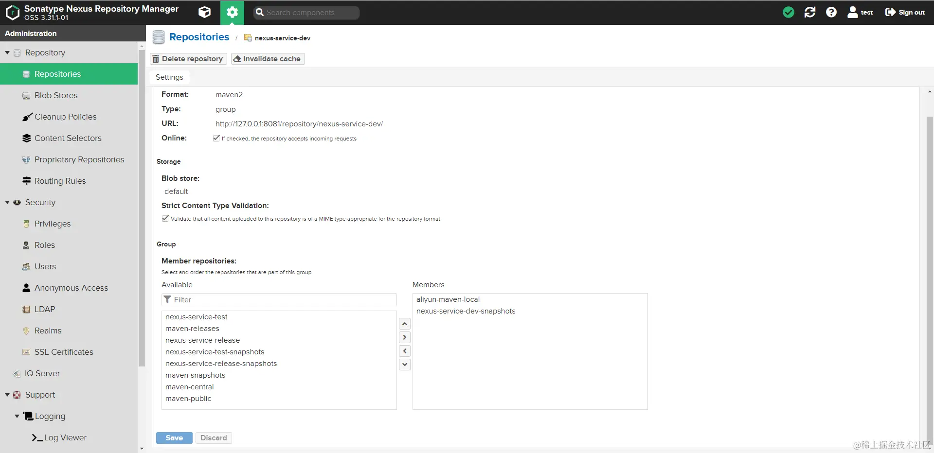 - Member repositories:选择分配为同组的成员,会按照顺序从上到下依次访问。