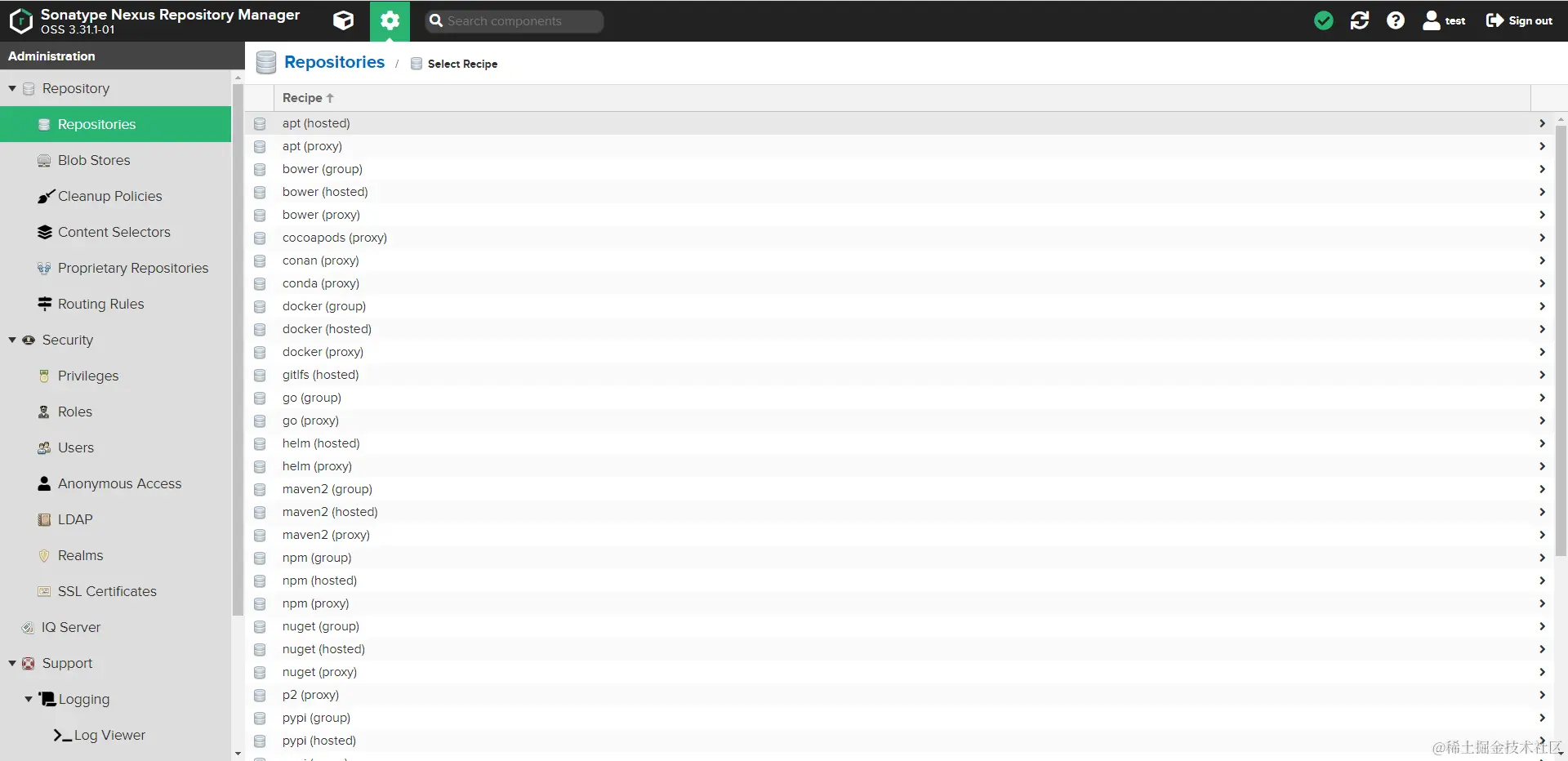 可以作为Maven私服,也支持npm仓库、nuget仓库、ruby仓库、docker镜像仓库等。