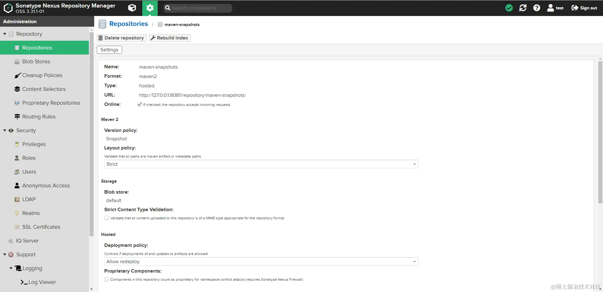- 版本策略,正式版的选择Release。如果是用来测试的仓库,则选择Snapshot。