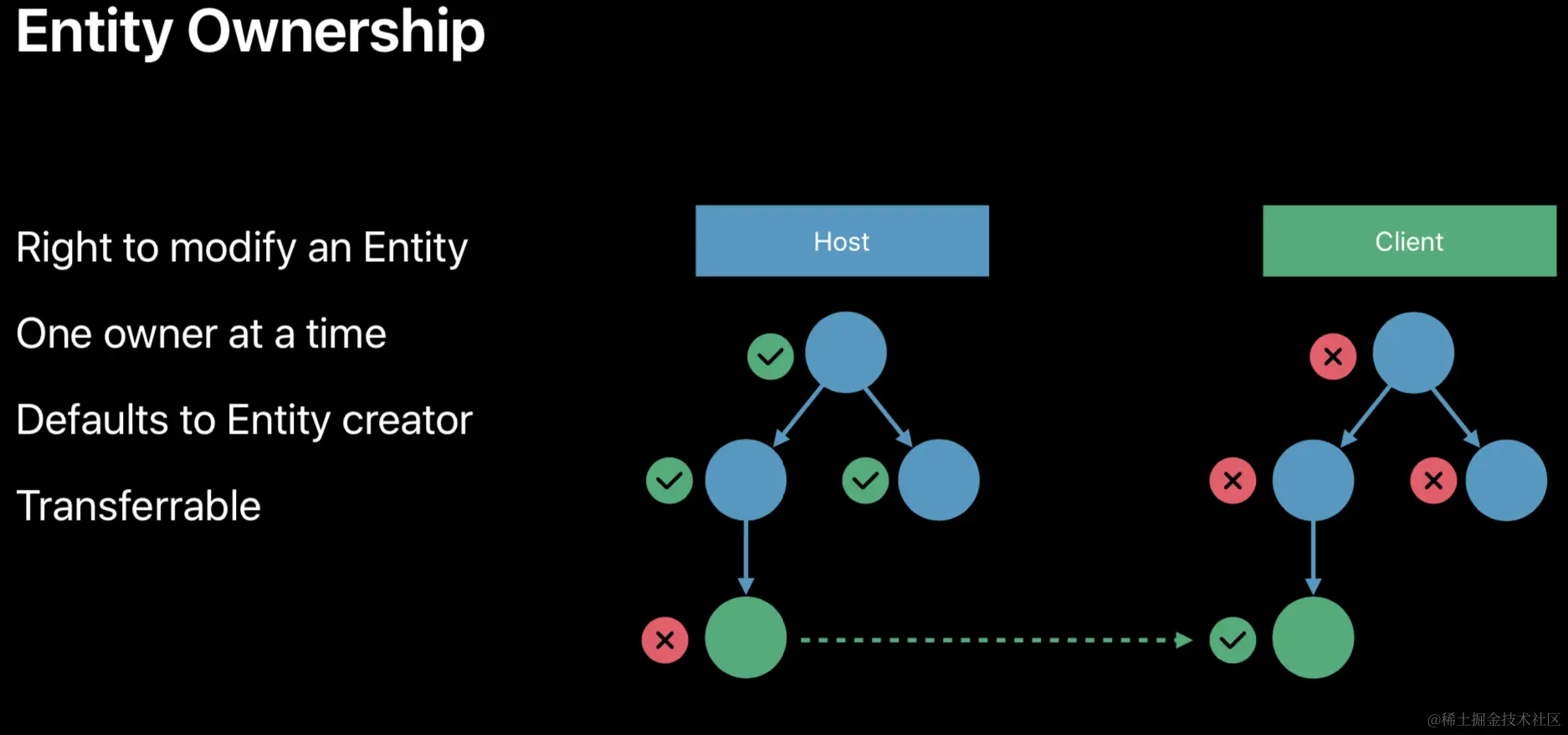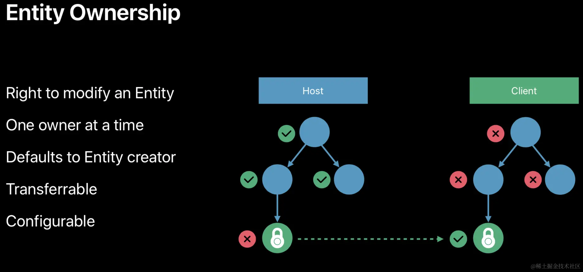需要注意的是,在所有权问题上 Host 并不特殊,当 Host 试图修改某个实体时,它也需要去申请所有权,然后才能修改。
