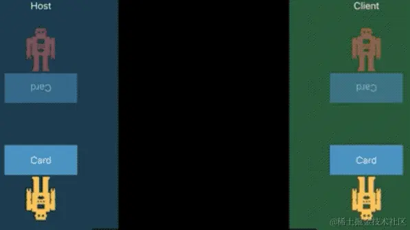 但是,这样还有另一个问题:点击 Client 中的卡片,只有 Client 中有反应,Host 中无变化: