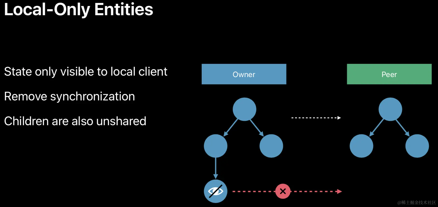 本地实体的状态只对本地客户可见,它移除了同步功能,并且子元素也不会被共享。代码如下: