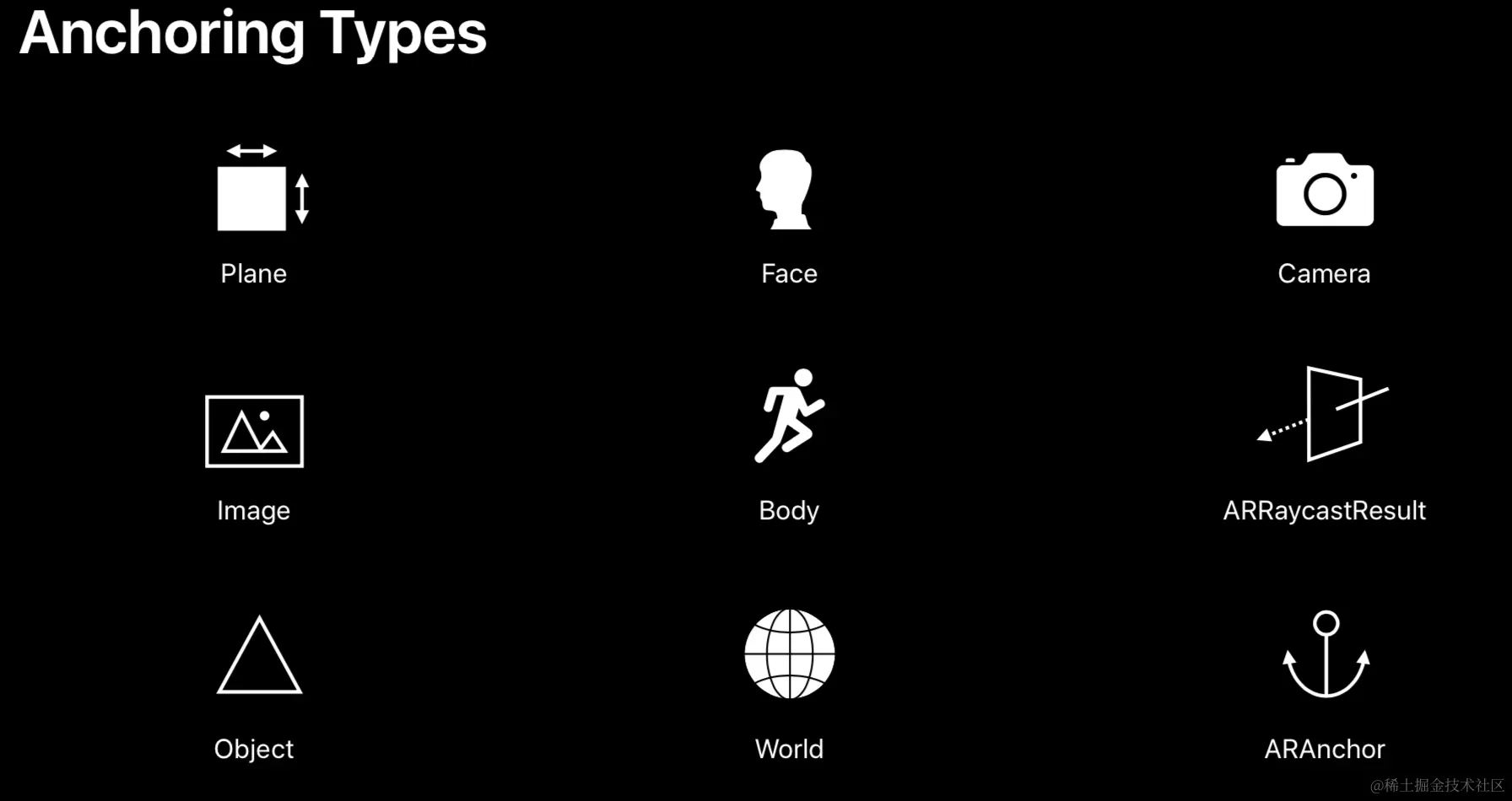 - Anchor:虚拟物体与现实的连接点,用来放置虚拟物体
