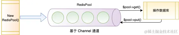 - 在 Swoole 中 Redis 连接池是基于 Channel 来实现的,实行先进先出的原则。