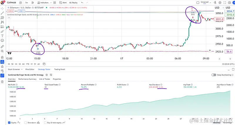 在 1 个月的时间里,该策略在交易以太坊(ETH/USD)时创造了 52% 的惊人回报。