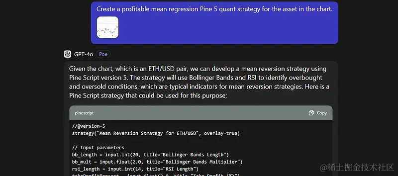 GPT-4o 回答说,它的策略包括使用布林带和 RSI。