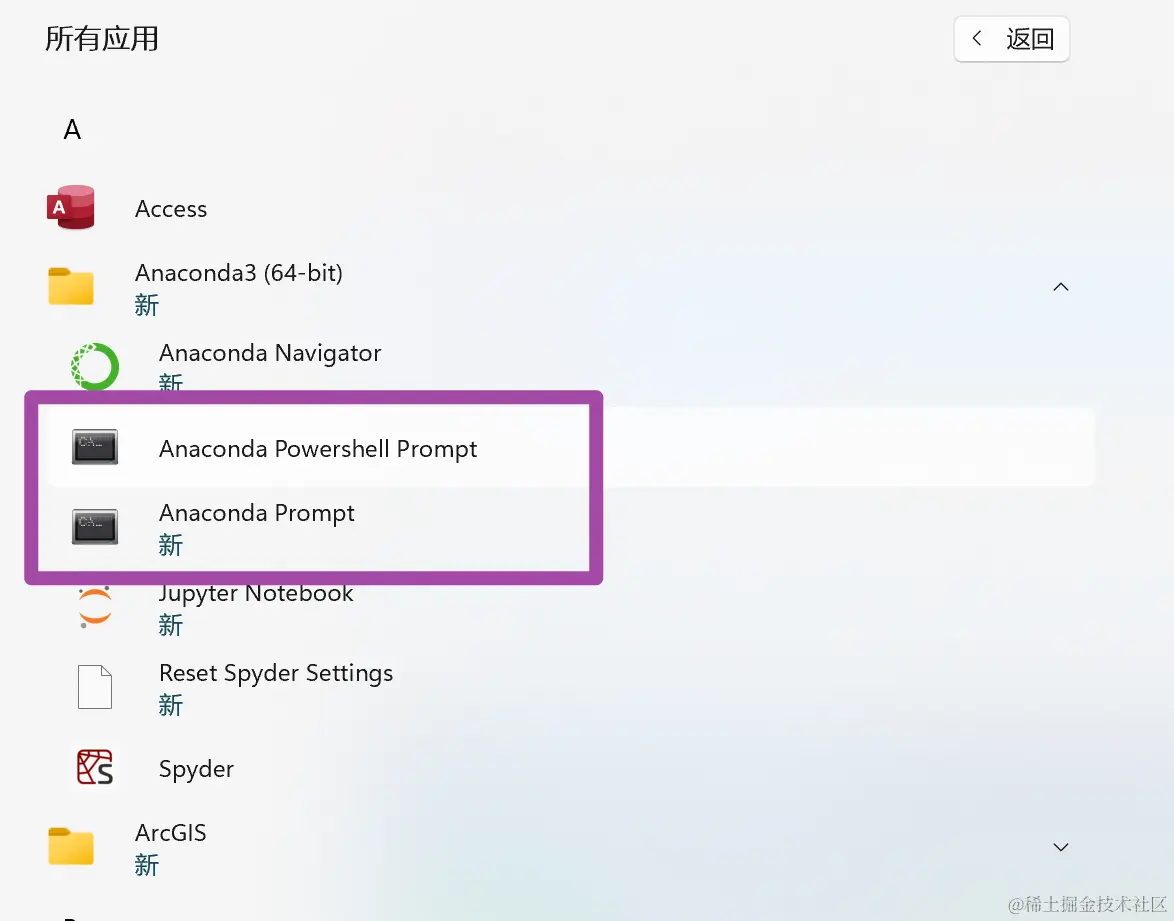 配置gdal模块完毕后,我们打开电脑中的任意命令行工具。如果前期是在Python环境配置的gdal模块,那么就建议用Python环境下的命令行工具——否则,如果直接用操作系统自带的命令行工具,可能会出现由于环境变量配置不当导致的代码执行错误。例如,如果大家前期是在Anaconda环境的Python中配置的gdal模块,那么此时就打开Anaconda下属的Prompt工具即可;如下图所示,这两个Prompt工具选择任意一个均可。