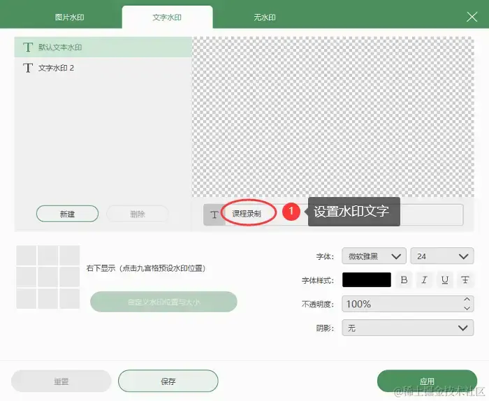 步骤3:此外,我们还可以给录制的课程添加水印,有图片水印与文字水印两种可供选择,并根据自己的需求进行调整。