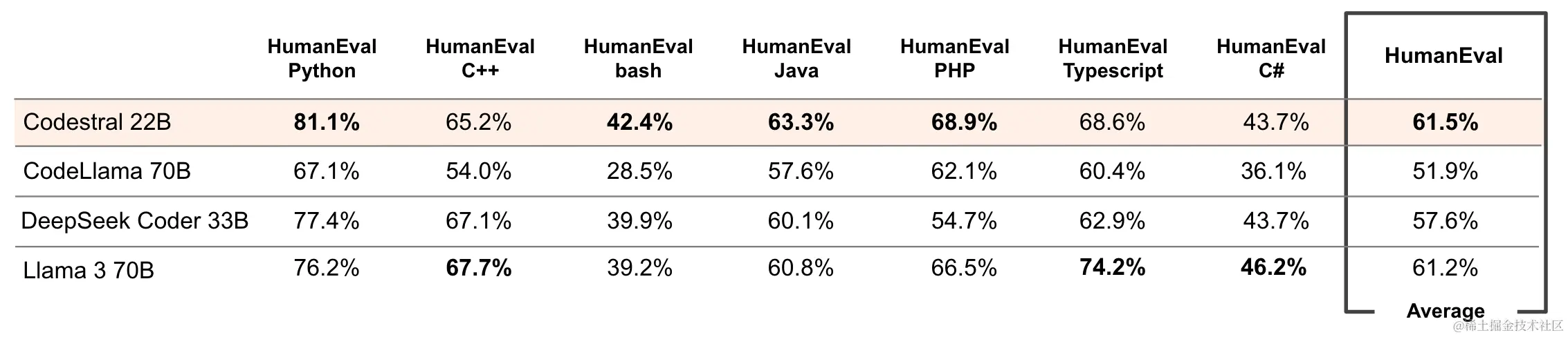 Codestral-22B 在代码生成任务中展现出优异的性能,具体表现在以下方面: