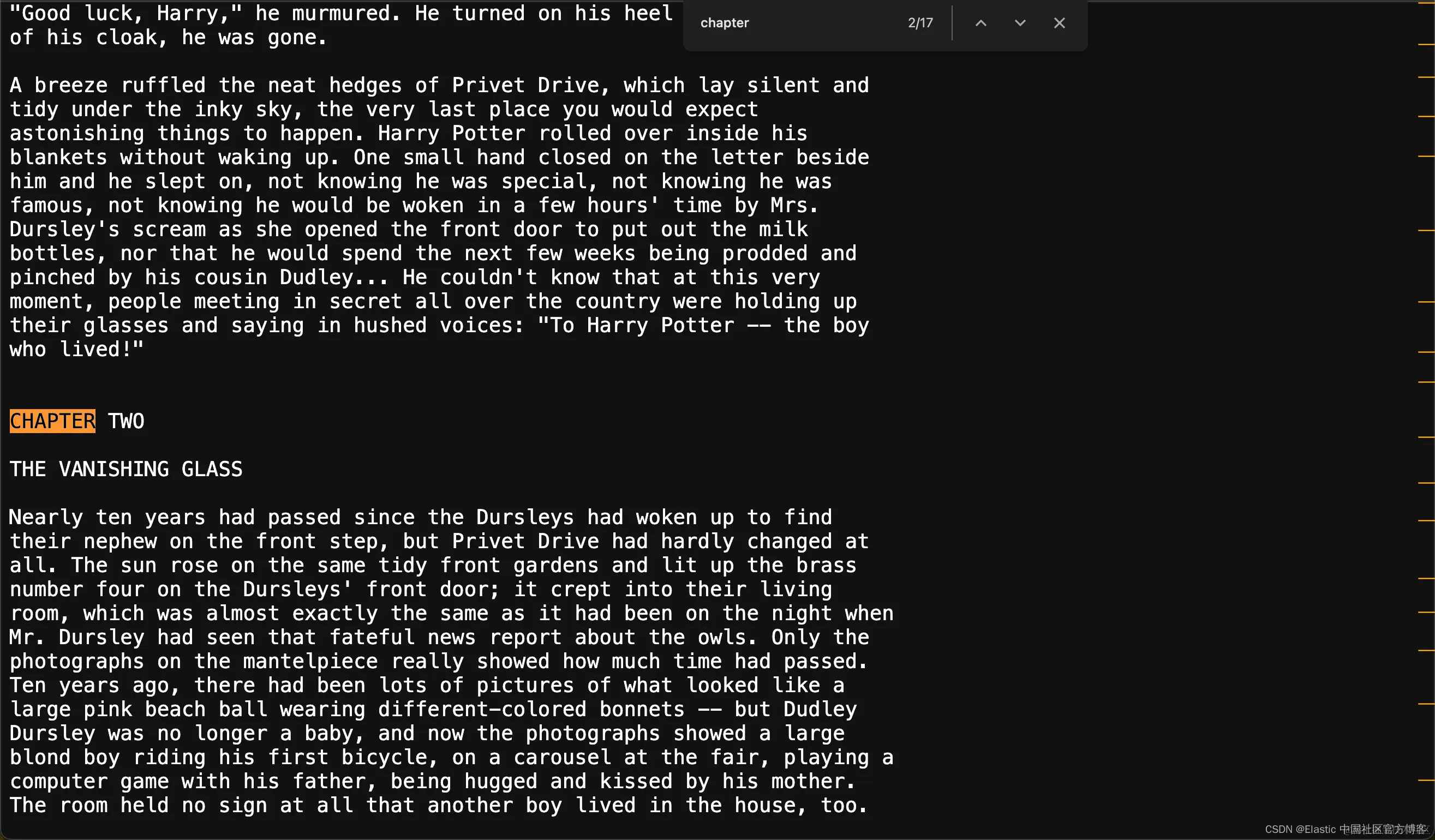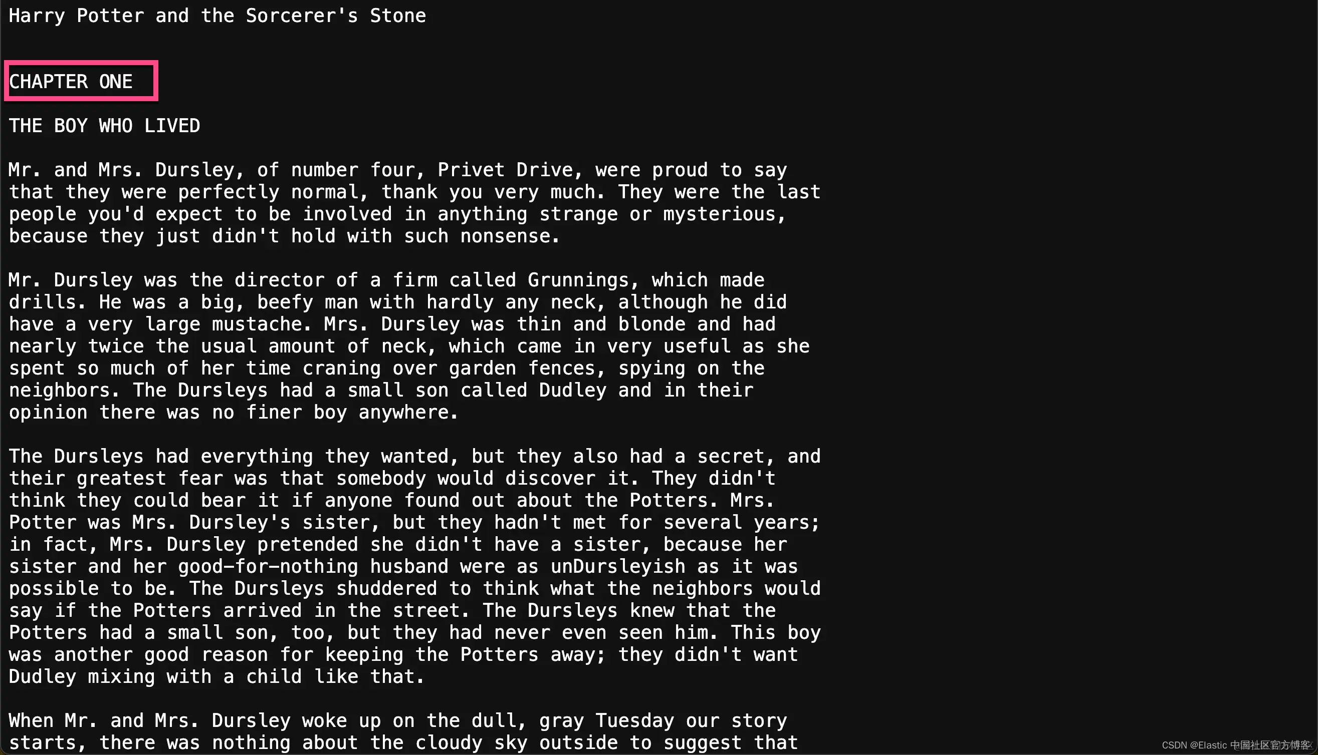 在我们的例程中,它讲使用哈利波特的文字来进行练习。这个文字,我们可以在地址进行获得。我们可以通过如下的方式来进行下载: