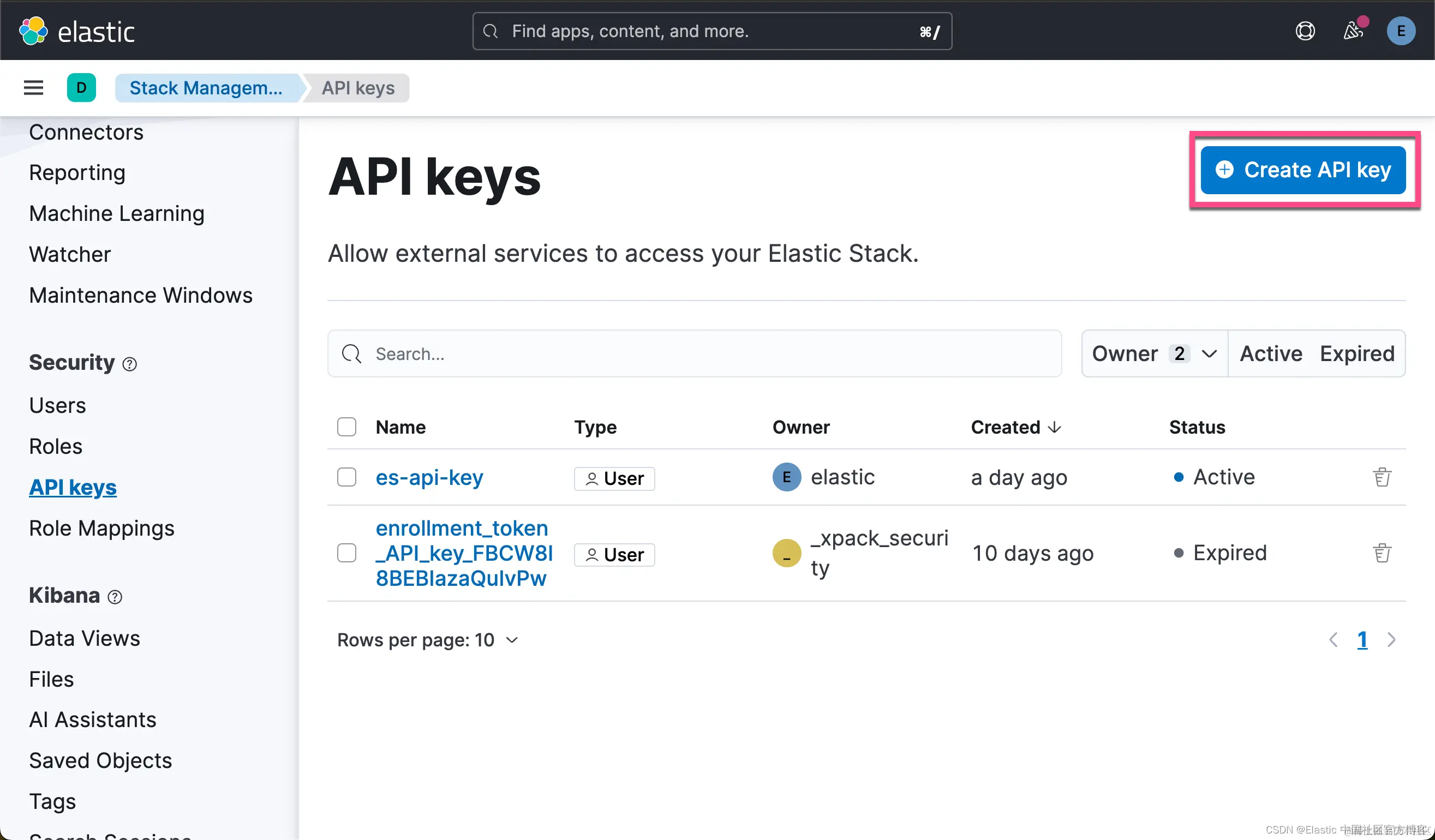 点击上面的拷贝按钮,我们就可以得到所需要的 Elastic API key。